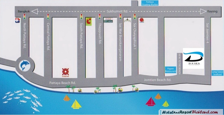 D @ SEA Hotel ตั้งอยู่สุดถนนหาดจอมเทียนเดินเพียง 2 นาทีถึงชายหาด